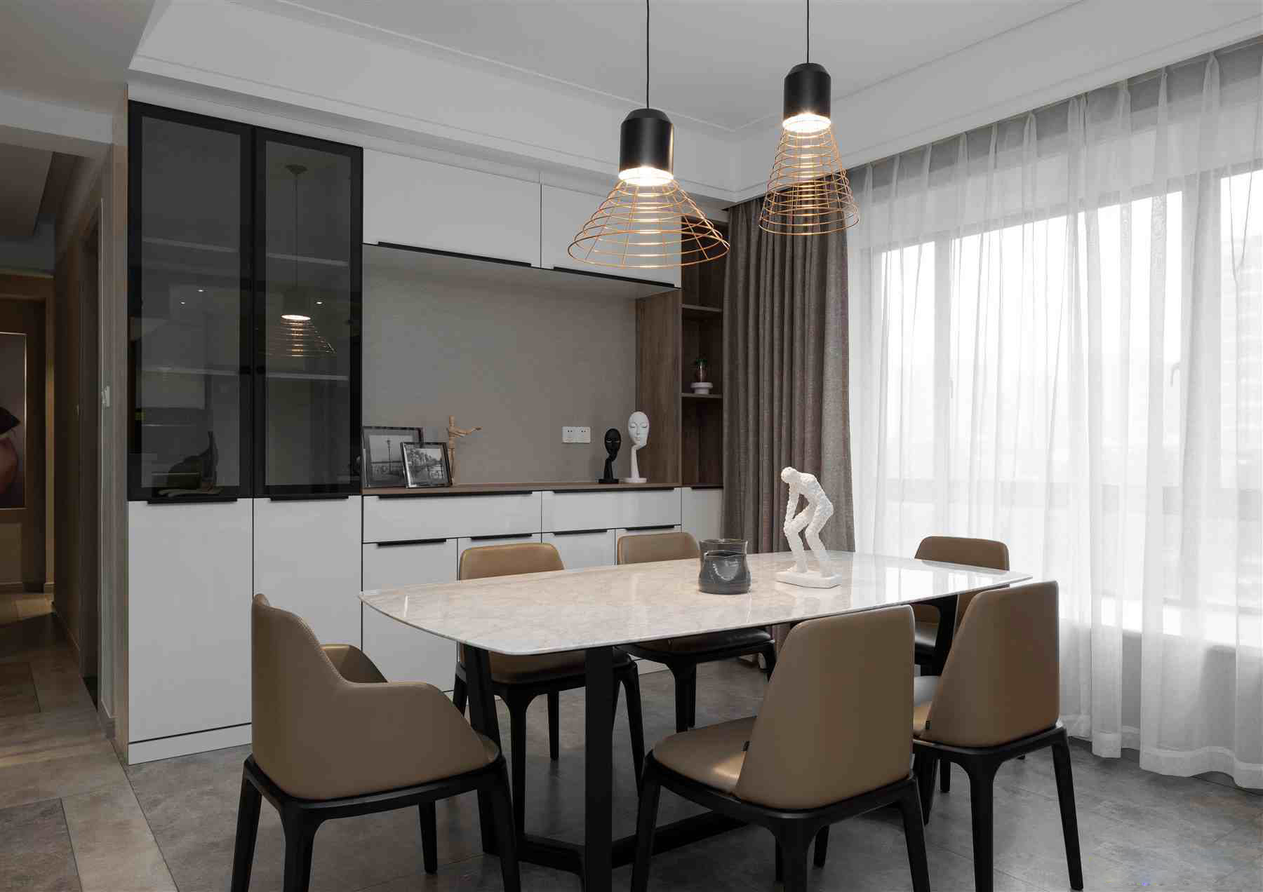 后現(xiàn)代風(fēng)格作為一種設(shè)計(jì)潮流,推崇自然、高雅的生活情趣中,更加強(qiáng)調(diào)人性化的主導(dǎo)地位,突出設(shè)計(jì)的文化內(nèi)涵。簡(jiǎn)單的石膏線線條,獨(dú)具設(shè)計(jì)感的射燈設(shè)計(jì),空間的光線明暗有序,