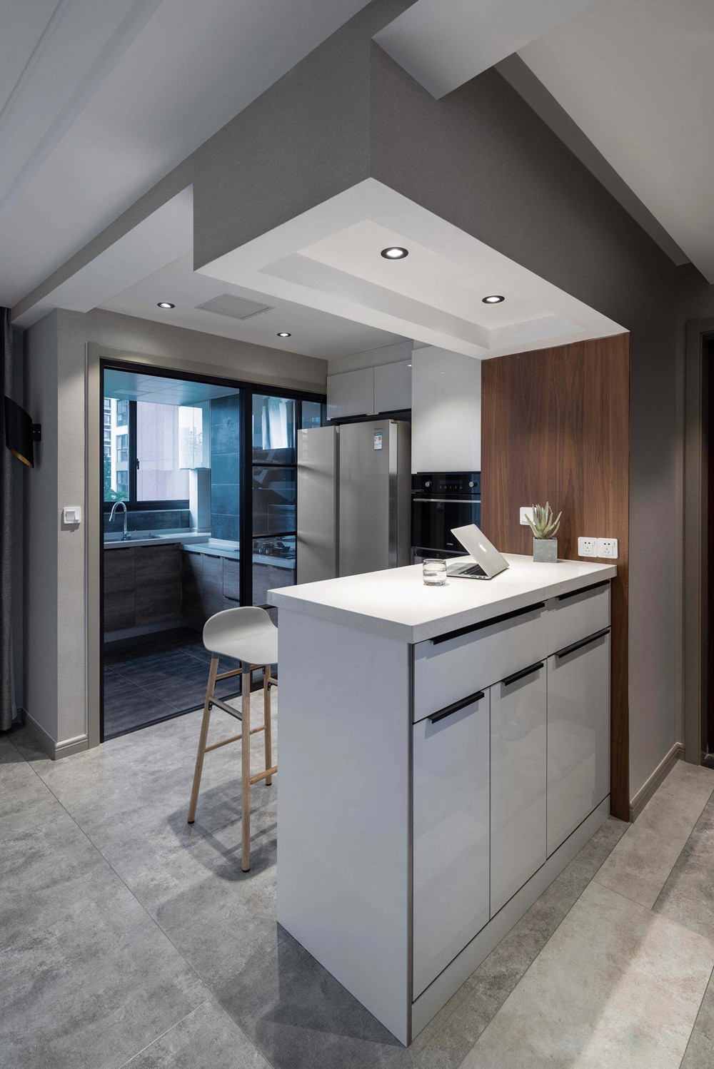 后現(xiàn)代風(fēng)格作為一種設(shè)計(jì)潮流,推崇自然、高雅的生活情趣中,更加強(qiáng)調(diào)人性化的主導(dǎo)地位,突出設(shè)計(jì)的文化內(nèi)涵。簡(jiǎn)單的石膏線線條,獨(dú)具設(shè)計(jì)感的射燈設(shè)計(jì),空間的光線明暗有序,配合的相得益彰,整體色系為一體的吧臺(tái)設(shè)計(jì),高品獨(dú)特。