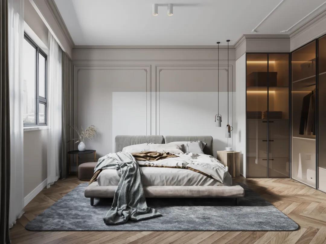 次臥沿用現(xiàn)代輕奢風(fēng)格的設(shè)計(jì)理念,主體采用線條、顏色的搭配來進(jìn)行裝飾,選擇柔和光源,打造出溫馨和寧靜的睡眠氛圍。