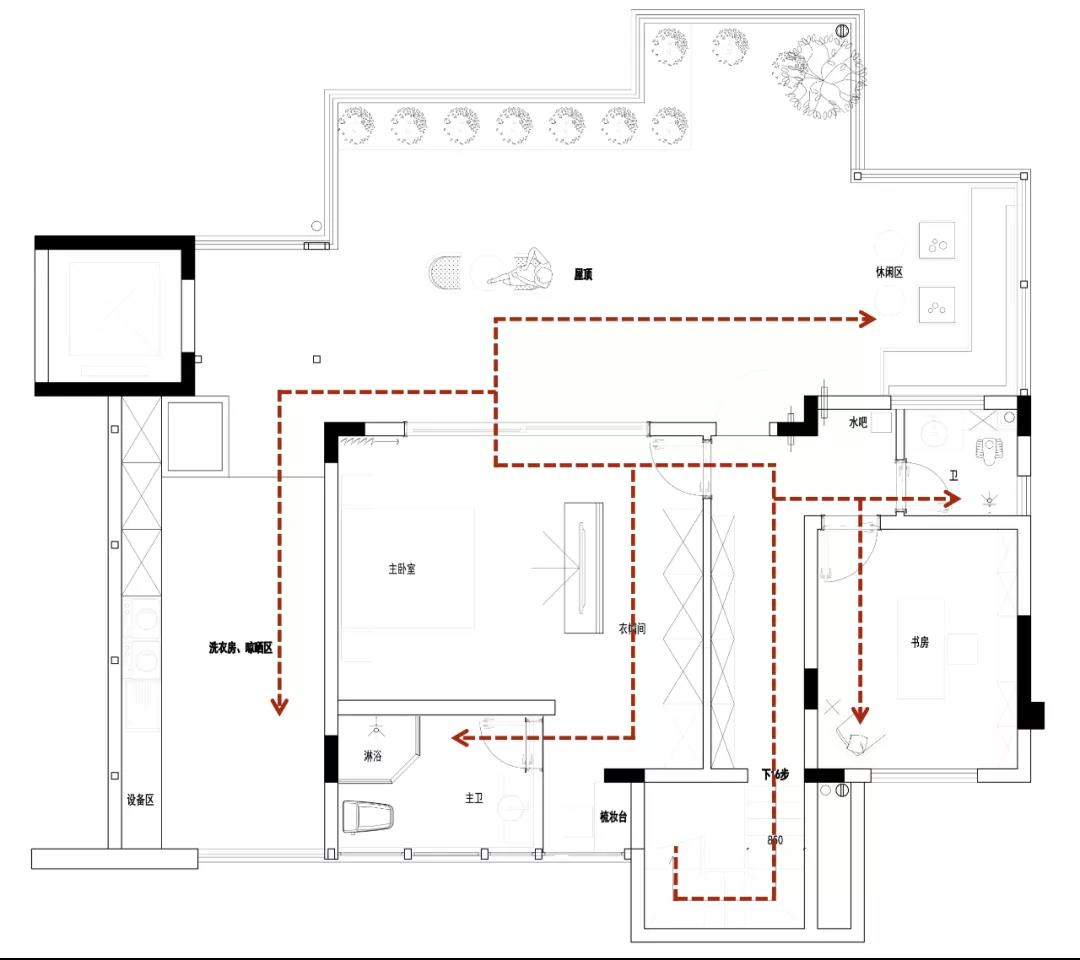 二樓原始平面圖 二樓平面動(dòng)線(xiàn)圖 一樓原始平面圖 一樓平面動(dòng)線(xiàn)圖 會(huì)客廳 陽(yáng)臺(tái) 餐廳 樓梯間 主臥 衣帽間 主衛(wèi)