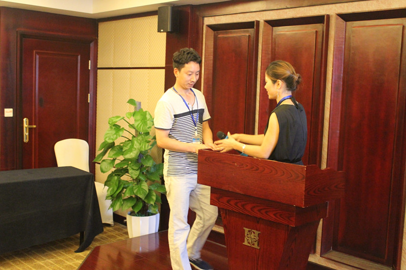 財務(wù)部蔣經(jīng)理向7月簽單冠軍頒發(fā)現(xiàn)金獎勵