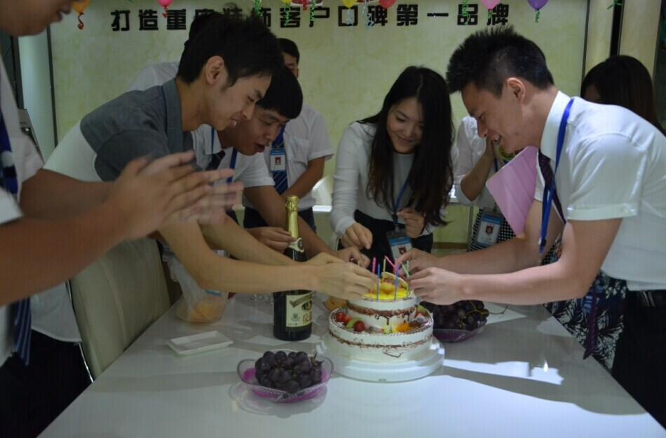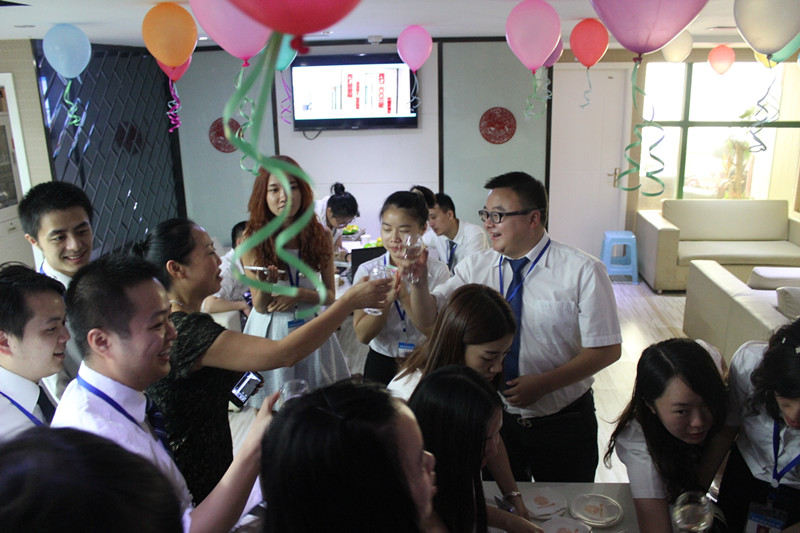 隨后,在“祝你生日快樂(lè)”的美妙歌聲和熱烈掌聲中,李總同家人們一起打開(kāi)香檳,切開(kāi)新思路十一周歲的生日蛋糕,共同祝福新思路十一周歲生日快樂(lè)。喝著芬香醉人的香檳,品嘗著香甜可口的蛋糕,在場(chǎng)的每個(gè)人臉上都洋溢著開(kāi)心的笑容。大家頻頻舉杯,談笑風(fēng)生,豪情滿(mǎn)懷,憶崢嶸,品喜悅,慶典現(xiàn)場(chǎng)成了一片歡樂(lè)的海洋。當(dāng)然在慶祝之余,我們也把蛋糕和香檳送到正在現(xiàn)場(chǎng)談單的客戶(hù)手中,也讓他們一起分享這種幸福和喜悅。新思路的今天,離不開(kāi)管理者的智慧領(lǐng)航,也離不開(kāi)每一位新思路家人的執(zhí)著付出,更離不開(kāi)廣大客戶(hù)十一年來(lái)的精心呵護(hù)與大力支持,感謝每一位可愛(ài)的客戶(hù)!