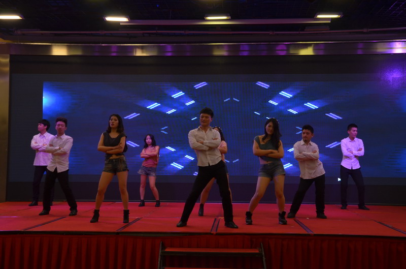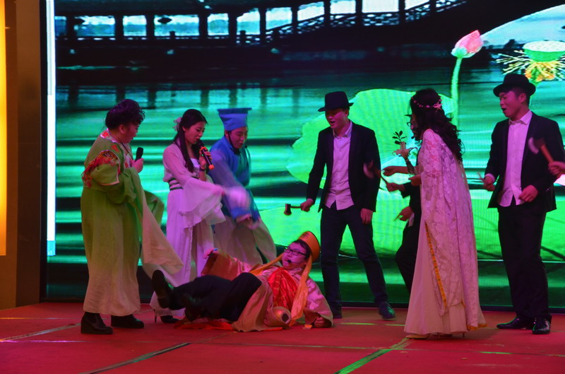 接下來的節(jié)目演出立刻讓晚會現(xiàn)場成為歡樂的殿堂。歌曲、舞蹈、小品、合唱多種節(jié)目形式,精彩紛呈,所有節(jié)目均為公司員工自編、自導(dǎo)、自演,充分反映出新思路裝飾生動而富有內(nèi)涵的企業(yè)文化。繽彩紛呈、風(fēng)格各異的十幾個節(jié)目贏得觀眾滿堂喝彩,充分展現(xiàn)出新思路家人多才多藝、能歌善舞的一面。熱鬧喜慶的《拜新年》作為開場第一個節(jié)目閃亮登場,歡快的舞蹈、喜慶的旋律、愉悅的氛圍感染著每一位在場的觀眾,為整場晚會點燃激情。活力奔放的串燒舞蹈《小蘋果》引起現(xiàn)場尖叫聲不斷;工程部家人帶來的歌曲《超越夢想》以大合唱的形式唱響了新思路人超越夢想、勇攀高峰的激情和心聲;性感柔美的歌伴舞《萬水千山總是情》更是引得場下“粉絲”陣陣尖叫。要說全場最閃亮的舞蹈,當屬才女徐藝丹帶來的獨舞《映山紅》,優(yōu)美的舞姿訴說著無盡的情思,散發(fā)著醉人的芳香,看得人是如癡如醉。而江北店家人帶來的小品《招聘》延續(xù)去年的爆笑風(fēng)格,幽默的臺詞,惟妙惟肖的模仿讓現(xiàn)場笑聲連連,掌聲不斷。還有南坪店家人表演的小品《新白娘子傳奇》、工程部家人帶來的情景劇《交房》、沙坪壩店家人帶來的對唱《有你有我》、江北店家人表演的相聲《回家》......家人們以業(yè)余的身份發(fā)揮出了專業(yè)演員的水平,把角色演繹得惟妙惟肖,讓人嘆為觀止。