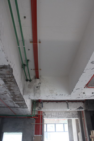 8月21日,在經歷一些小波折(主要是業(yè)主與雅居樂物業(yè)方面就頂樓花園施工問題發(fā)生了一些小糾紛,導致水電施工不太順暢)之后,潘老師的工地進入了水電驗收階段。小編也特地跑了趟工地,為大家?guī)泶罅啃迈r、詳實的水電照片。廢話不說了,上圖!