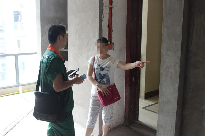 偉星工作人員正在跟業(yè)主交流水壓測試情況