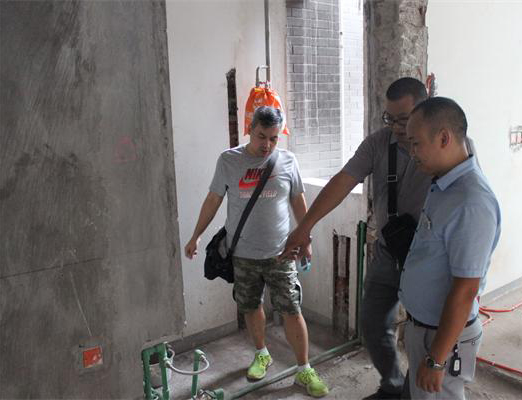 業(yè)主、設(shè)計(jì)師、項(xiàng)目經(jīng)理三方商討廚房水管改造方案