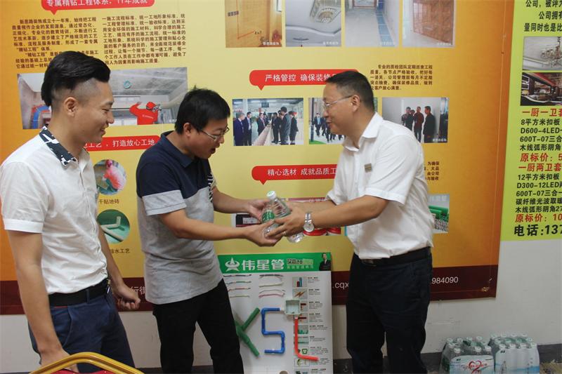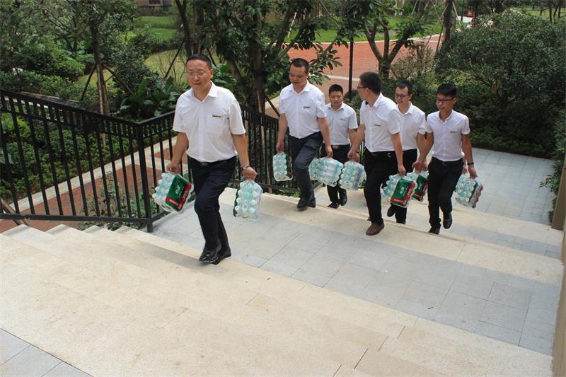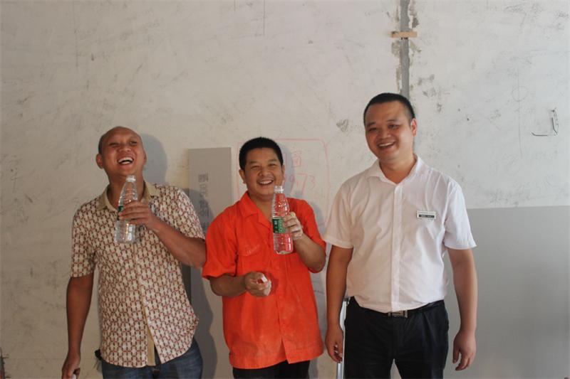 工程部文經(jīng)理親手將水遞到項(xiàng)目經(jīng)理手中