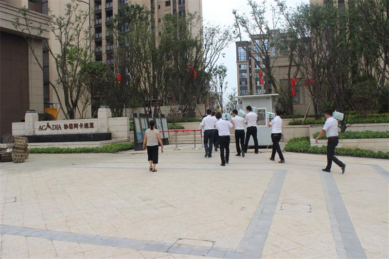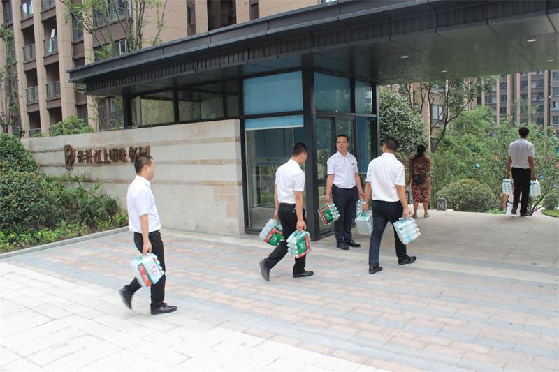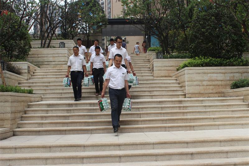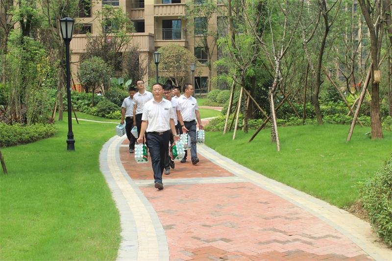 慰問小組扛著水向協(xié)信阿卡迪亞工地進(jìn)發(fā)