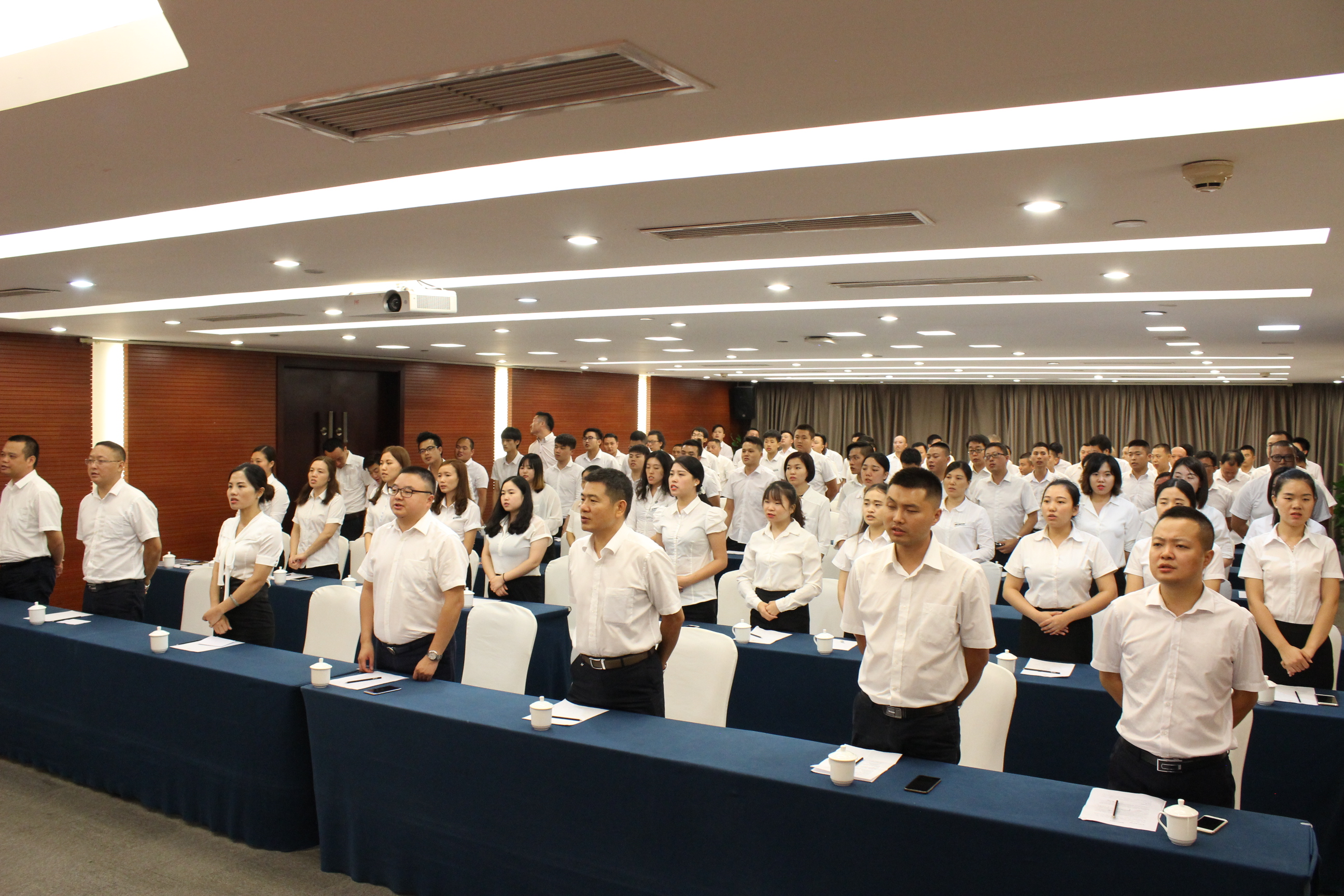 大會(huì)開(kāi)始,全場(chǎng)起立宣讀公司口號(hào)