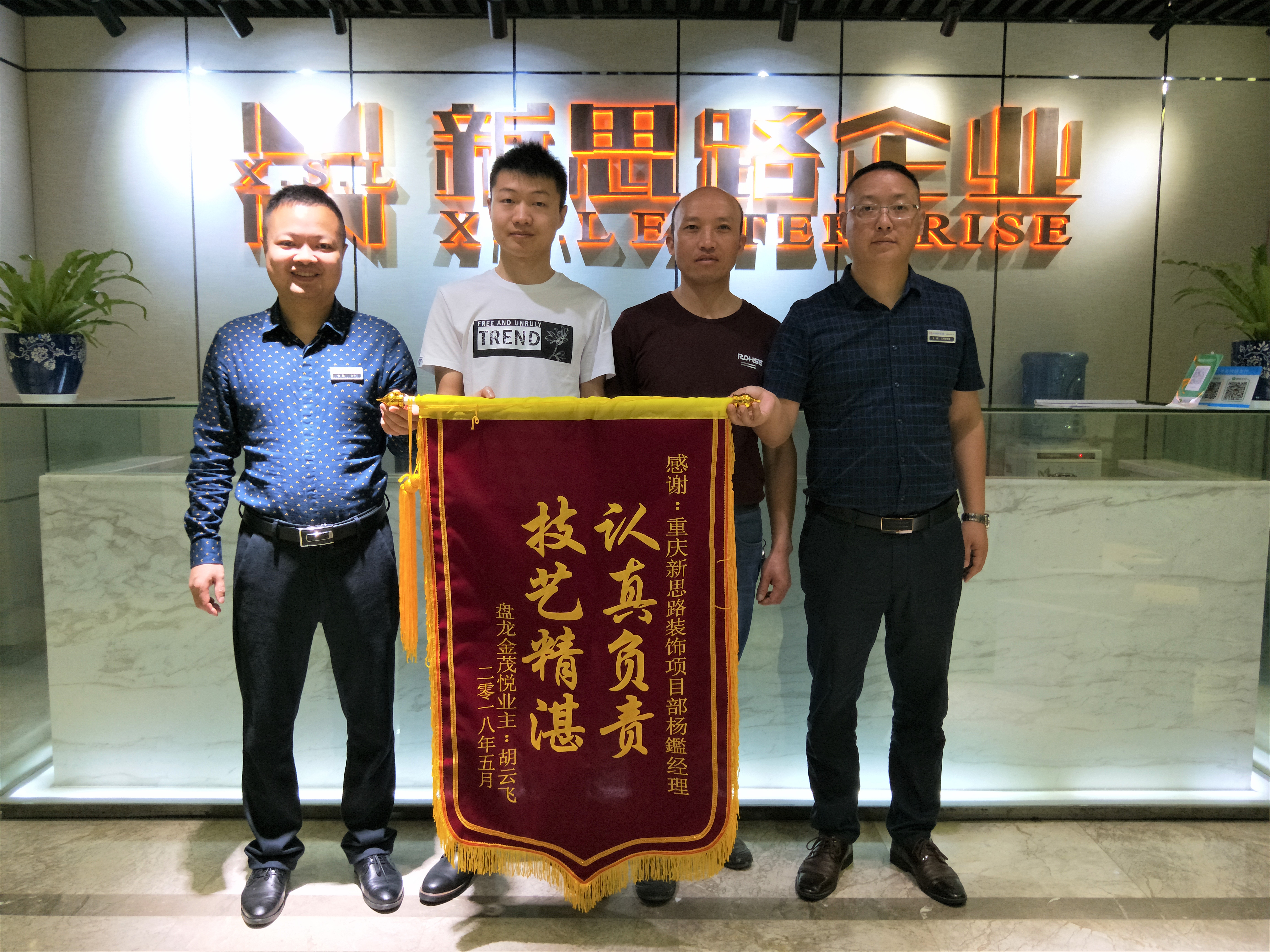 都說一日之計在于晨,22日上午工作伊始,就喜獲來自盤龍金茂悅業(yè)主胡老師錦旗一面。上書“認(rèn)真負(fù)責(zé),技藝精湛”八字。這短短八字卻彰顯著胡老師對新思路裝飾精湛的施工工藝和整個裝修過程的體驗滿意度。