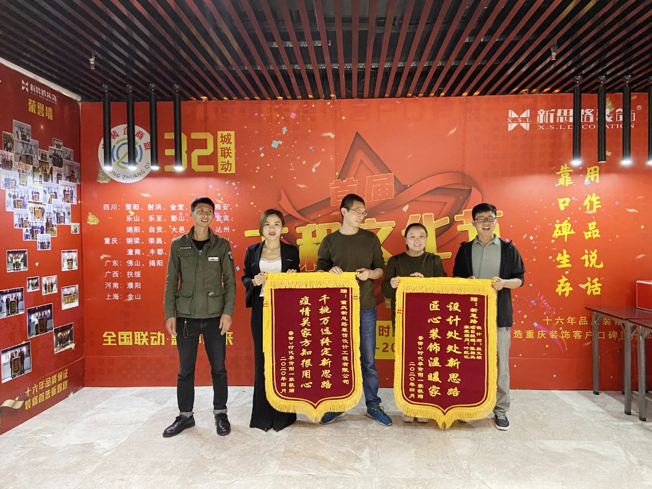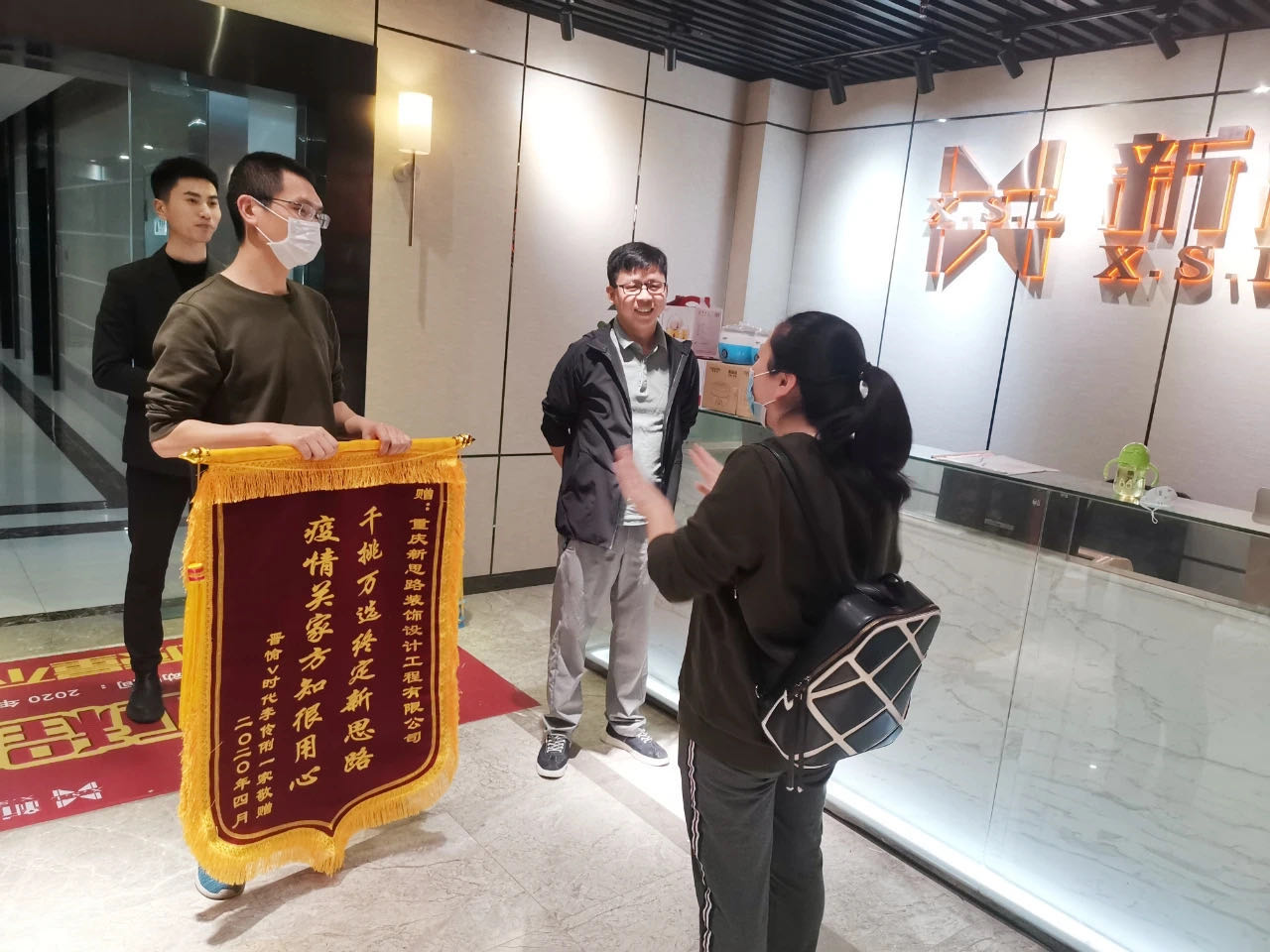 因?yàn)橐咔椴环奖愠鲩T(mén),李女士先是寫(xiě)了很長(zhǎng)一封感謝信給設(shè)計(jì)師敖元壩,現(xiàn)在終于解禁,也有時(shí)間,還親自上門(mén)為公司送來(lái)兩面錦旗。“一面給設(shè)計(jì)師、項(xiàng)目經(jīng)理和客戶代表,還有一面是給新思路裝飾,謝謝你們給我這么好的家!”