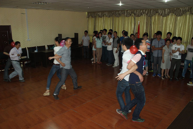 以背夾氣球為例,游戲以小隊為單位,每個小隊分成幾組,每組兩個人背對背,氣球放置于兩人頸部之間夾好,兩人挽好手臂后開始移動,氣球不能破不能掉,破了掉了回原點重跑,第一對跑到后第二對開始跑,哪個小隊最先完成即算勝利。這個游戲側重于如何發(fā)揮團隊智慧,如何進行隊員合理配對,細節(jié)決定成敗,一旦失誤就會對其他隊員造成直接影響。游戲中所有隊員精誠合作,為了團隊竭盡全力,現(xiàn)場氣氛扣人心弦,加油吶喊聲此起彼伏,每個人心中都深刻感受到團隊的力量。