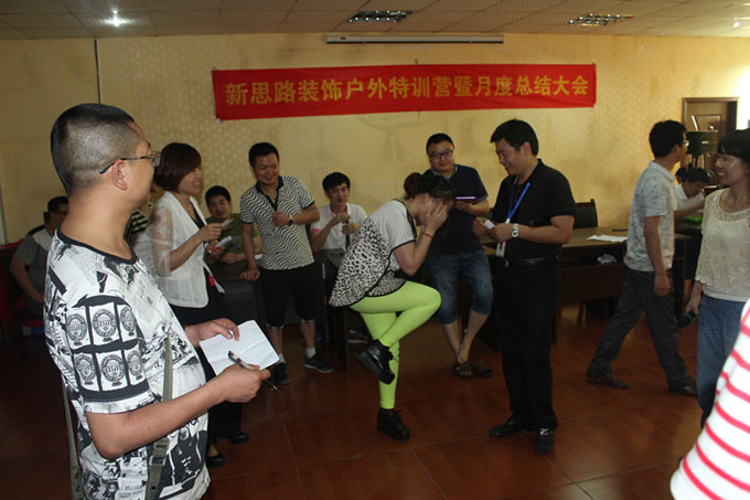 六月的云篆山山色秀麗,郁郁蔥蔥,一派生機盎然的景象。6月3號下午3點,新思路裝飾戶外特訓營活動正式開始。由于天氣炎熱,為員工身體著想,戶外拓展活動臨時改在室內(nèi)進行。雖然是在室內(nèi),但所有人依舊熱情高漲,斗志昂揚。在張總的指揮下,60多號員工分成了三個小隊,“NO.1”“雄霸天下”“野狼隊”,每一個名字都霸氣無比,盡顯新思路裝飾開拓創(chuàng)新、銳意進取的風范。隨著時間一分一秒的過去,大家早已是汗流浹背,但是再高的溫度也抵擋不住新思路人火熱的心?;顒泳o張有序地開展,提前引爆了一整個夏天的激情與活力。