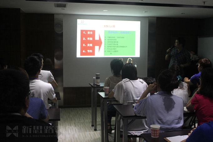 張總通過現(xiàn)場投影儀,對主要設(shè)計目標(biāo)、材料運(yùn)用、照度標(biāo)準(zhǔn)值、家的空間、人體工程學(xué)、風(fēng)水基本要素、功能空間設(shè)計等進(jìn)行了詳細(xì)的闡述和講解。與會資深設(shè)計師還分享了各自的設(shè)計心得體會,講解了不同裝修風(fēng)格中應(yīng)該注重的細(xì)節(jié),不可缺少的元素,設(shè)計與工藝的有效融合……張總和設(shè)計師們精彩、風(fēng)趣的演講,讓培訓(xùn)現(xiàn)場不時傳出陣陣掌聲與歡笑。
