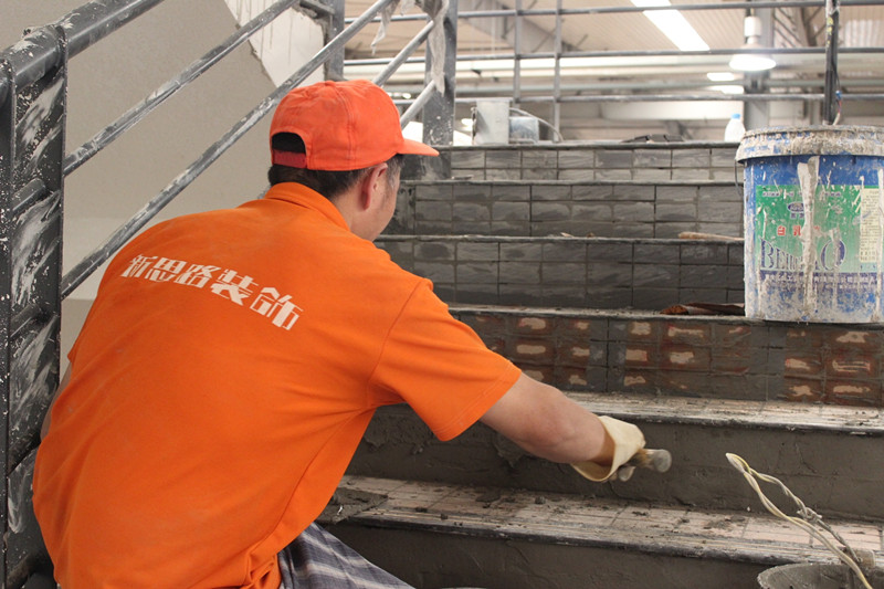 工人師傅正在鋪貼地磚