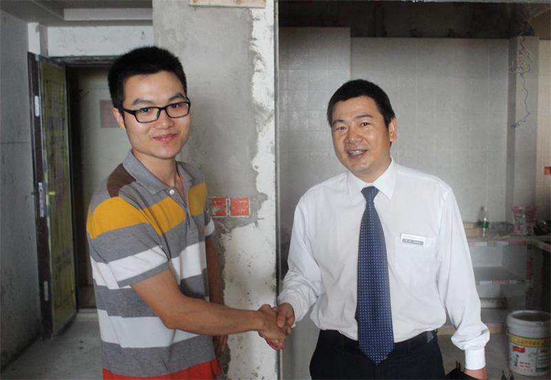 業(yè)主高興地同張總握手,并稱贊新思路工地做得確實(shí)好