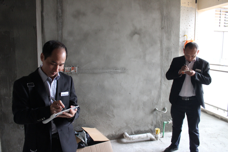 此次巡查的工地中,有剛進場開工的,有處于水電階段的,也有即將完工交付的,基本保證了此次檢查能夠覆蓋各階段的工程內容。“進門首先檢查工地是否整潔,然后看安全保護,接下來看施工日志和施工情況。”文經(jīng)理強調說。新思路裝飾注重每一個細節(jié),尤其是工地形象更是重中之重,進門的第一件事就是確認工地形象是否達到公司標準。在檢查過程中,從水電線路的走位,到木工的制作;從材料的堆放,到垃圾的處理,巡查人員均嚴格按照公司工地管理的相關標準進行檢查,發(fā)現(xiàn)問題現(xiàn)場通知相關項目經(jīng)理限期整改到位,真正做到為客戶把好工地質量關。