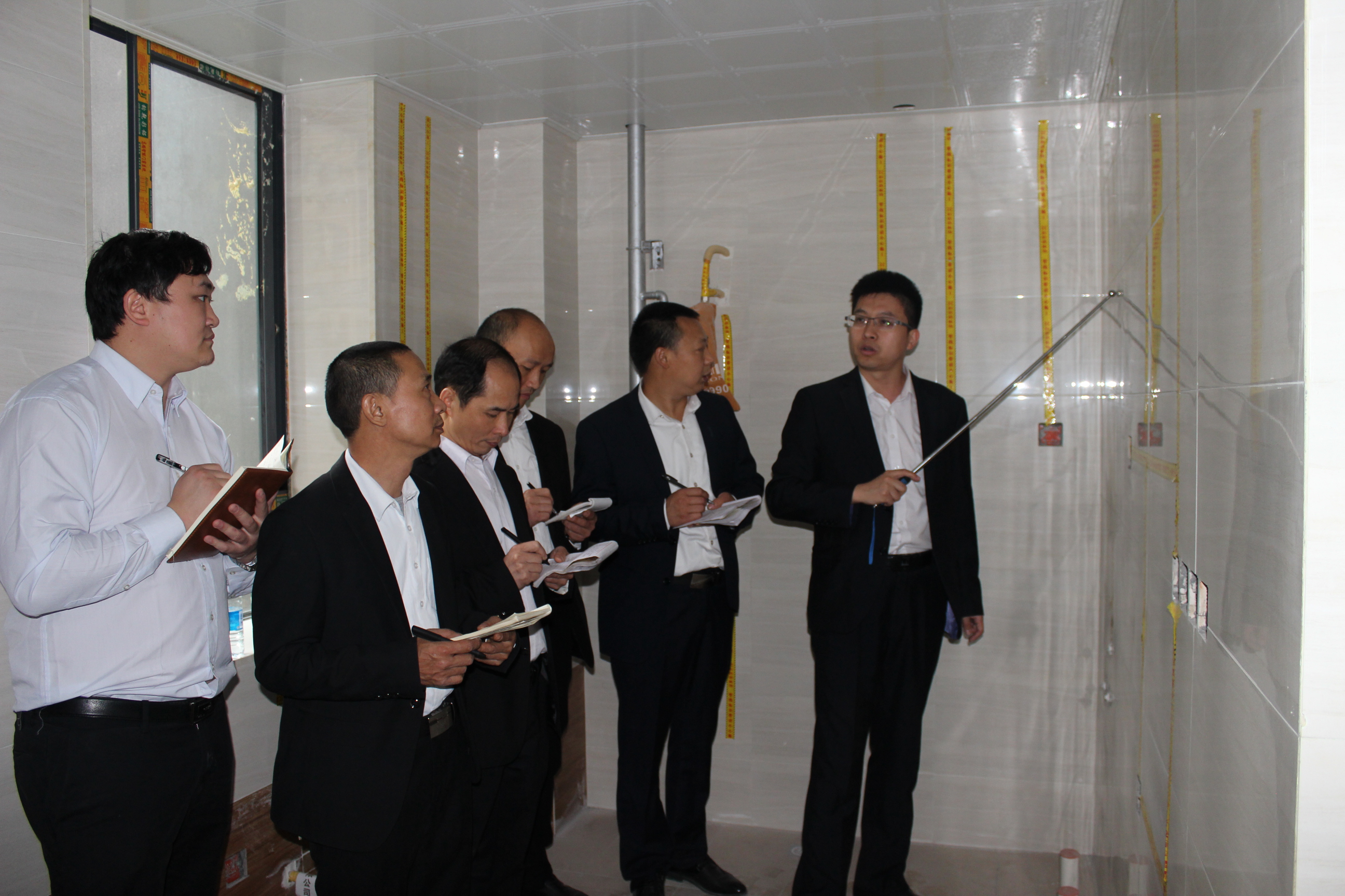這次巡查,除了工地形象、施工進程、工藝工序之外,施工標準、施工安全、現(xiàn)場管理等方面也是考察的重點。剛踏入工地,巡檢隊伍立即忙碌起來,有檢查衛(wèi)浴水電改造,測試瓷磚空鼓,測量強弱線管分布,以及臥室等線路鋪裝等等。每位檢查人員都各司其職,每一項檢查都細致到位。對于檢查情況,巡查人員也如實記錄工程情況及施工質量情況,并責令相關項目經(jīng)理限期整改。對于工地形象規(guī)范施工的工地,文經(jīng)理對該項目經(jīng)理特提出口頭表揚和現(xiàn)金獎勵,并希望在今后的工作中再接再厲!同時希望所有項目經(jīng)理以他們?yōu)榘駱?,扎扎實實的做好本職工作,為新思路美好的明天添磚加瓦!