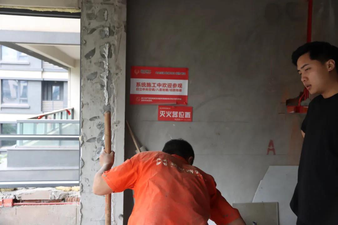 一到工地上,設(shè)計(jì)師戴杰就開始進(jìn)行各項(xiàng)檢查。我們的工人也正在工地上進(jìn)行作業(yè),設(shè)計(jì)師戴杰與工人進(jìn)行了詳細(xì)的交流,及時(shí)掌握工地進(jìn)度和各項(xiàng)情況。