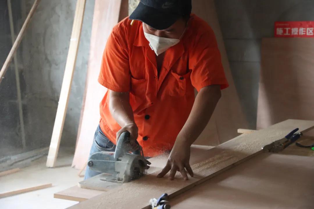 ▲設(shè)計(jì)師戴杰正在現(xiàn)場進(jìn)行檢查中