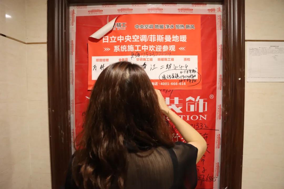 金域?qū)W府工地。這是一處正在進(jìn)行硬裝階段的工地,需要設(shè)計(jì)師注意的地方很多。我們到達(dá)現(xiàn)場(chǎng)后,設(shè)計(jì)師趙亞飛首先第一件事就是主動(dòng)在門(mén)上進(jìn)行簽到和在公司群里打卡。良好的管理制度才能有著高效率,能讓我們更好地為客戶服務(wù)。
