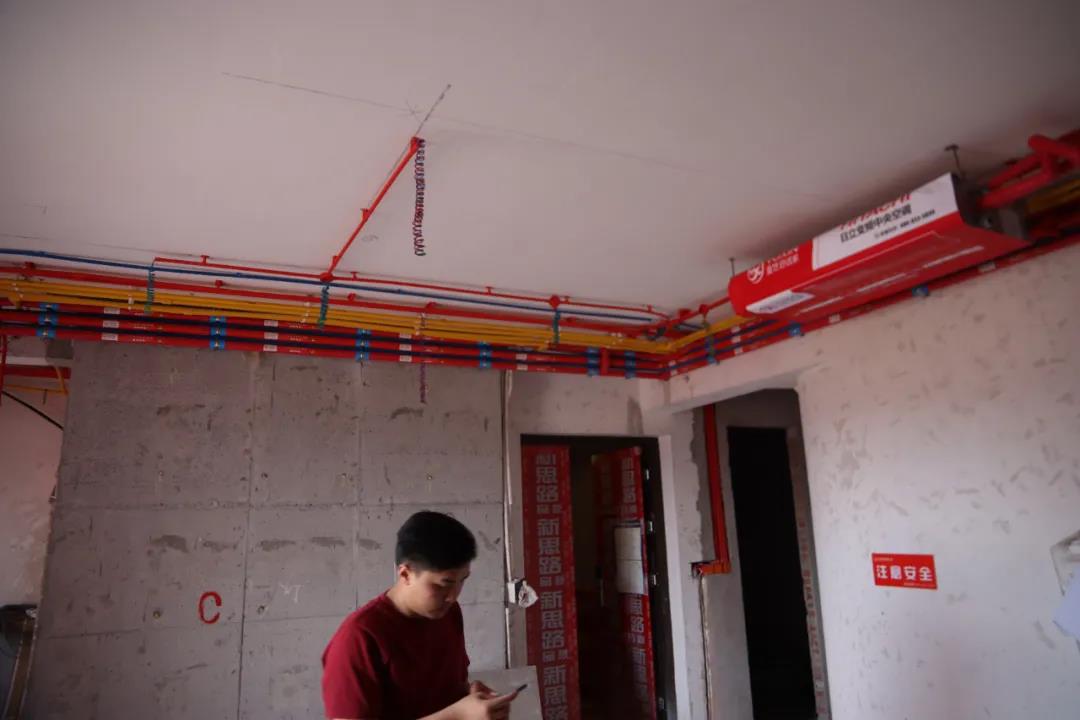 第二個工地已經(jīng)進行到水電階段,設計師戴杰來到工地后,需要對現(xiàn)場的管線布置再次進行檢查,看其是否符合自己設計要求和預期,保證呈現(xiàn)和還原出設計圖紙的想法還有功能,這既是對客戶的負責,也是對自己的設計負責,讓我們的客戶住進真正滿意和舒適的新家。