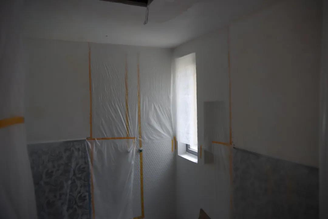 ▲已經(jīng)完成的衛(wèi)生間造型做好了保護措施