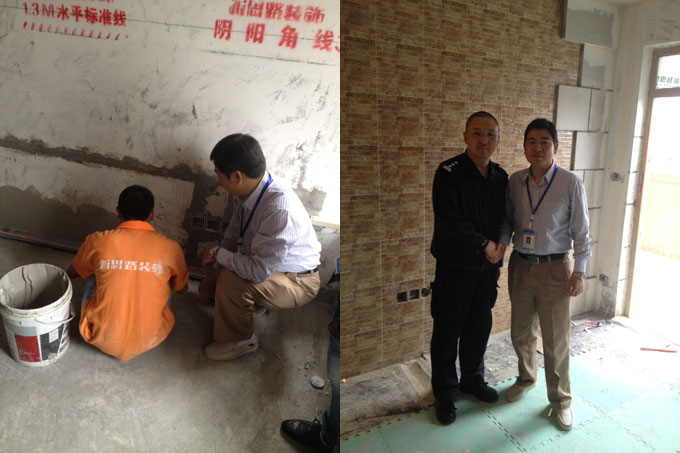接著我們又細(xì)致的查看了工地現(xiàn)場(chǎng),在經(jīng)過公司工藝工程升級(jí)培訓(xùn)之后,工地質(zhì)量、施工隊(duì)伍的素質(zhì)也得到了明顯提高。工地現(xiàn)場(chǎng)規(guī)范整潔,施工垃圾也分類歸放,工人施工技術(shù)更加熟練專業(yè),在很多工藝細(xì)節(jié)上,均采用新技術(shù)解決了工程施工中遇到的難題。