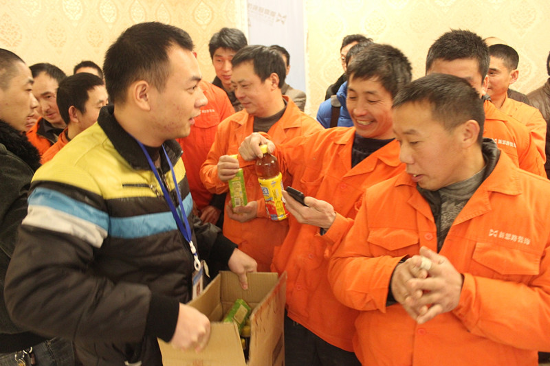 質(zhì)檢正在給工人師傅們發(fā)放飲品,這體現(xiàn)了新思路以人為本的企業(yè)文化