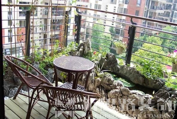 中式風(fēng)格的花園設(shè)計不外乎是山和水,古時的花園都是亭臺樓閣,小橋流水,顯然在面積不大的露臺是不太適合的。我們只能從中選取其精髓來營造一種中式氣息了。如上面的露臺花園裝修效果圖所示,其運用矮矮的假山,中間放一些清水,水上可以種一些浮萍等。在假山的另一頭可以遷一些竹子,種上一些爬行植物;然后在假山的旁邊放置深色的木質(zhì)小圓桌搭配木椅,兩邊的欄桿上可以吊制一些花草,一個具有中式復(fù)古的小露臺花園就形成了。