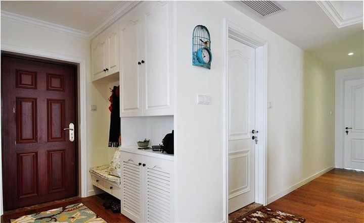 7、在玄關(guān)處擺放的家具要以不影響主人的出入為原則。溫馨提示如果居室面積偏小,可以利用低柜、鞋柜等家具擴大儲物空間。還可通過改裝家具來達到一舉兩得的效果,如把落地式家具改成懸掛的陳列架,或把低柜做成敞開式掛衣柜,增加實用性的同時又節(jié)省了空間。