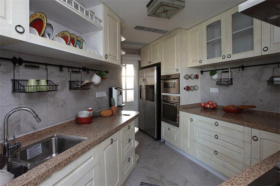(1)把冰箱、烤箱、微波爐、洗碗柜等做成嵌入式,布置在櫥柜中的適當位置,要注意方便開啟、使用。