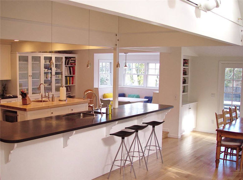 在室內(nèi)設(shè)置吧臺(tái),必須將吧臺(tái)看作是完整空間的一部分,而不單只是一件家具,好的設(shè)計(jì)能將吧臺(tái)融入空間。吧臺(tái)的位置并沒有特定的規(guī)則可循,設(shè)計(jì)師通常會(huì)建議利用一些畸零空間,如果將吧臺(tái)融入當(dāng)做是空間的主體時(shí),便要好好考慮動(dòng)線走向。良好的設(shè)計(jì)具有引導(dǎo)性,無形中使居住往來更加舒適。